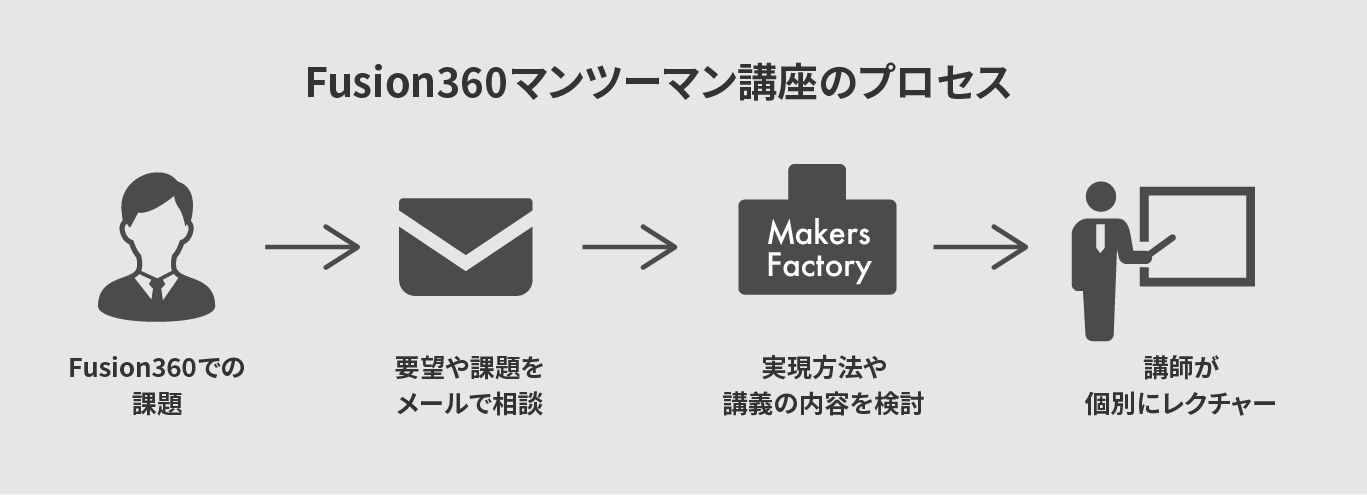 Fusion360でどんな課題があるか、以下のメールフォームよりお問い合わせください。実現の方法をやり取りさせていただき、内容や期間が決まったら費用をお知らせします。